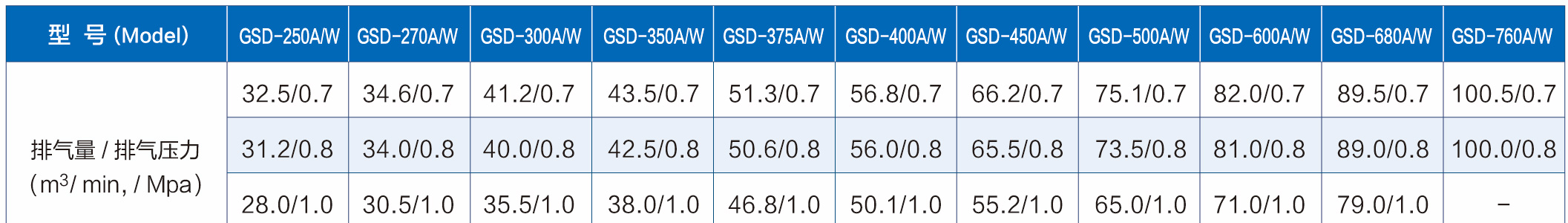 GSD系列(直聯)螺桿式空氣壓縮機技術參數(185kW-560kW)