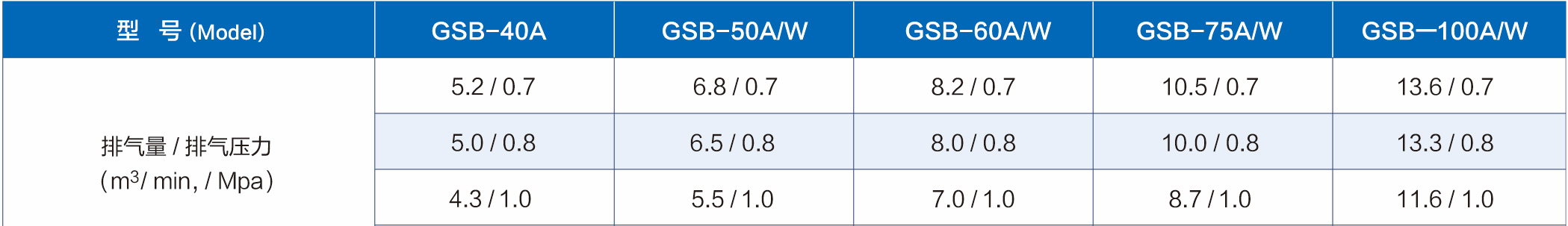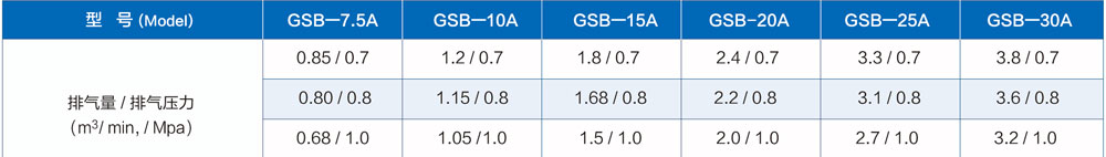GSB系列(皮帶傳動)螺桿式空氣壓縮機技術參數(30kW-75kW)