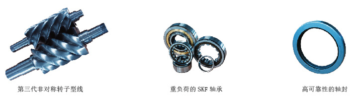 卡爾特原裝第三代非對稱型線雙螺桿主機,軸向進氣設計,效率比第二代提高5%~15%;配置瑞典SKF重載軸承,雙聯唇式軸封,可靠耐用。軸承設計使用壽命8萬h~10萬h,螺桿主機設計使用壽命約20萬小時。
